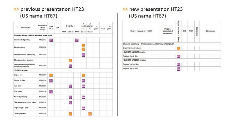 Harmonization & new presentation of the preventive maintenance schedules
